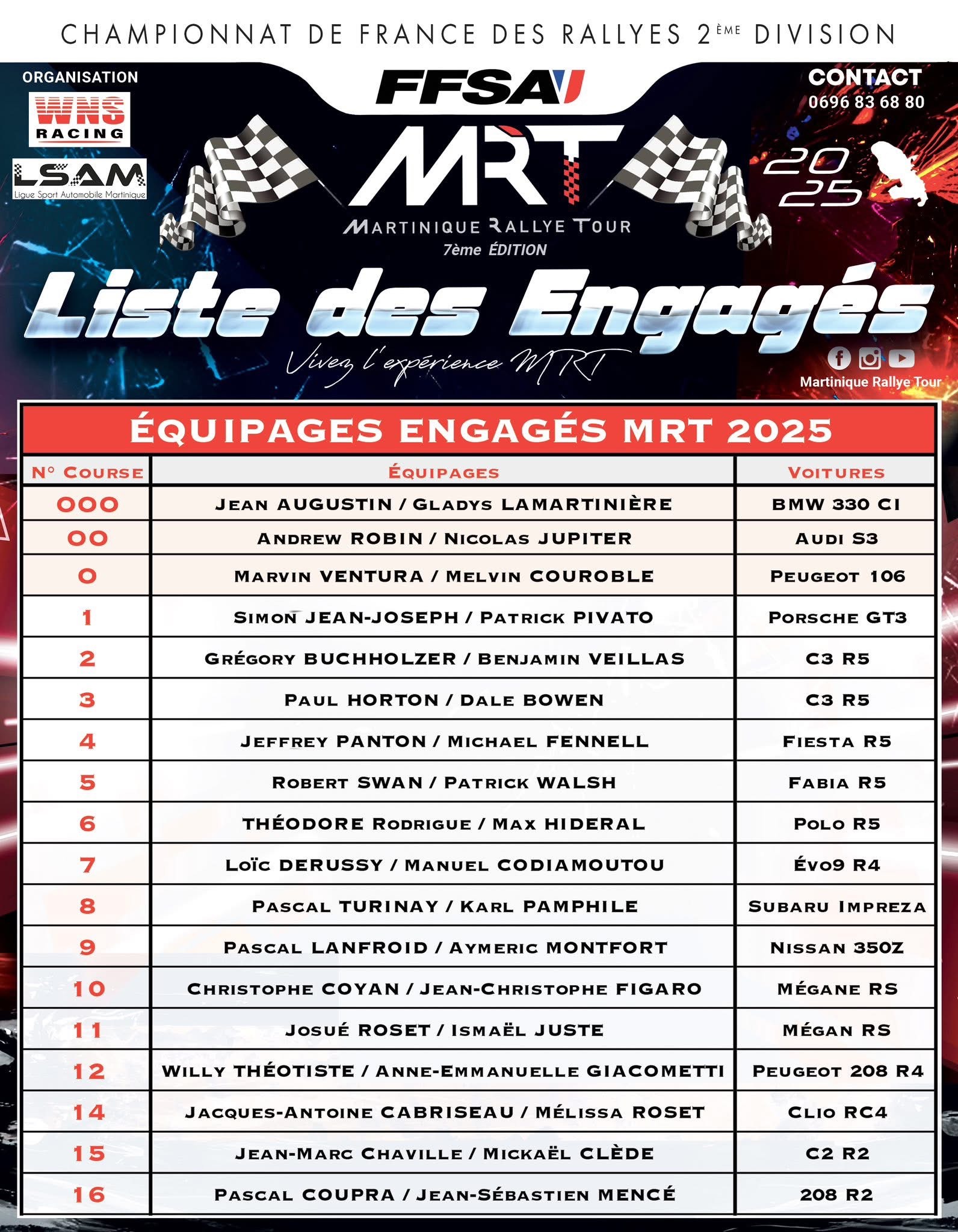 SACI Le Lamentin. Concours pour tenter de gagner 2 places aux essais du MRT mais aussi de nombreux lots et goodies à gagner à l’issue du tirage au sort ! 23 juillet 2025 : Poursuite de l’exposition et du jeu concours SACI. Puis exposition de la voiture