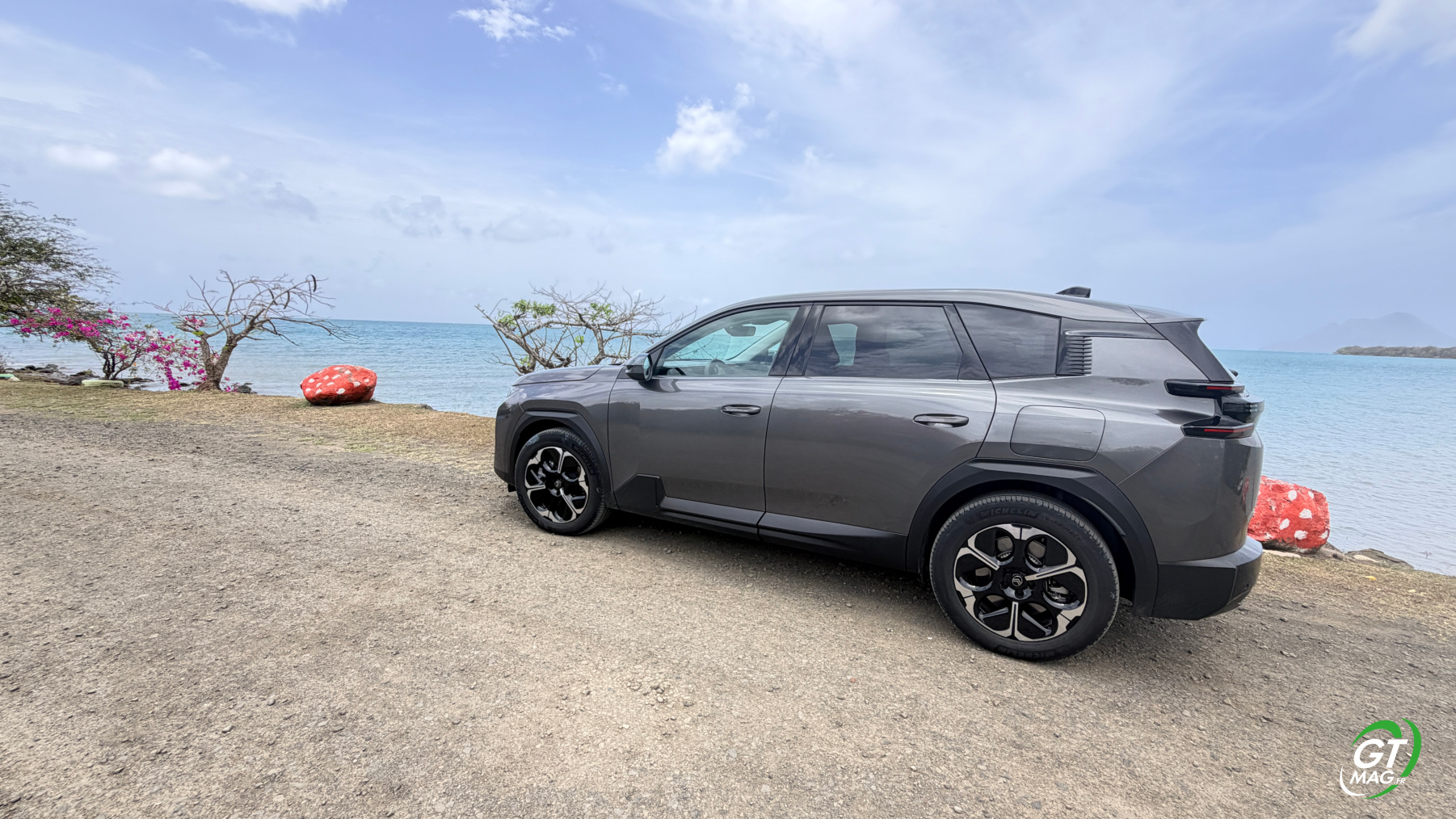 Le Citroën C5 Aircross a été présenté pour la première fois au Salon de l'Automobile de Shanghai en 2017. Il se positionne dans le segment des SUV compacts, visant à allier confort et praticité. Le C5 Aircross se distingue par son apparence robuste et moderne, avec des lignes fluides et une calandre distinctive. Il intègre la technologie "Advanced Comfort" de Citroën, offrant un excellent confort de conduite grâce à une suspension améliorée et des sièges ergonomiques. Doté d’un intérieur spacieux, il propose une modularité avec des sièges arrière coulissants et rabattables. Rappelez-vous le C5 Aircross est commercialisé à partir de 2018, avec une forte demande sur les marchés européen et chinois. Il intègre rapidement de systèmes d'infodivertissement modernes, une très bonne connectivité et des aides à la conduite avancées. Départ de chez Citroën Martinique pour tenter dans savoir plus sur la version 100% électrique essayée ce matin par GTMAG.fr !