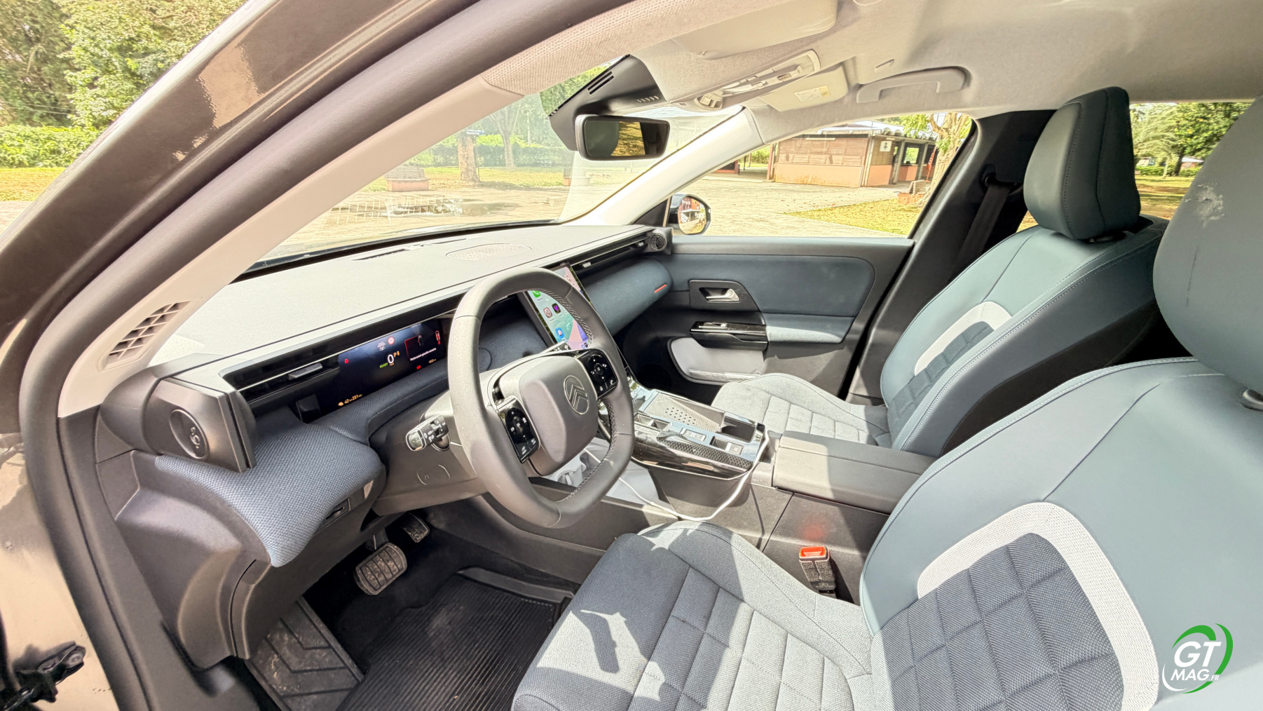 Le système intègre la compatibilité avec Apple CarPlay et Android Auto sans fil, tout en proposant une connectivité Bluetooth. Cependant, quelques lacunes subsistent : les réglages de la ventilation, bien que visibles sur une bande tactile permanente, sont entièrement à commande tactile, ce qui complique leur manipulation lors de la conduite. Quelques raccourcis physiques supplémentaires auraient été judicieux. Enfin, la caméra de recul déçoit par sa définition, rehaussant le sentiment d’une finition parfois décevante. Mais nous resterons sur une touche positive, Citroën fait enfin le choix d’intégrer un planificateur de charge, dans sa navigation GPS. Ce planificateur est non seulement complet mais surtout il est capable d’intégrer la quantité de batterie désirée à destination mais aussi à une borne de charge. Intéressant et pas si fréquent, cela peut aider certains anxieux qui savent du coup qu’ils ne descendront par exemple jamais en dessous de 15% pour faire le plein. Bien joué.